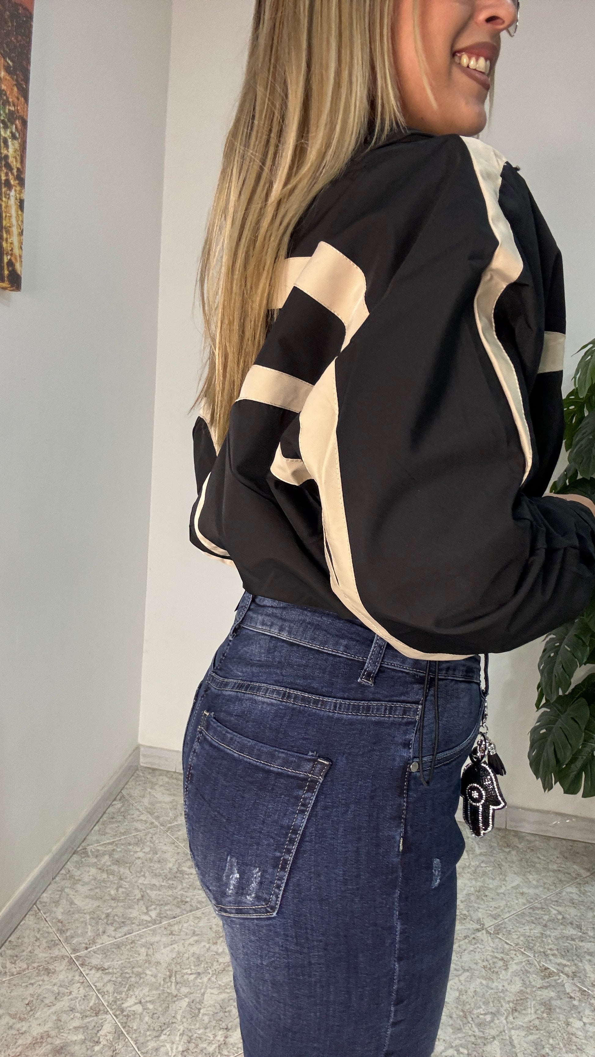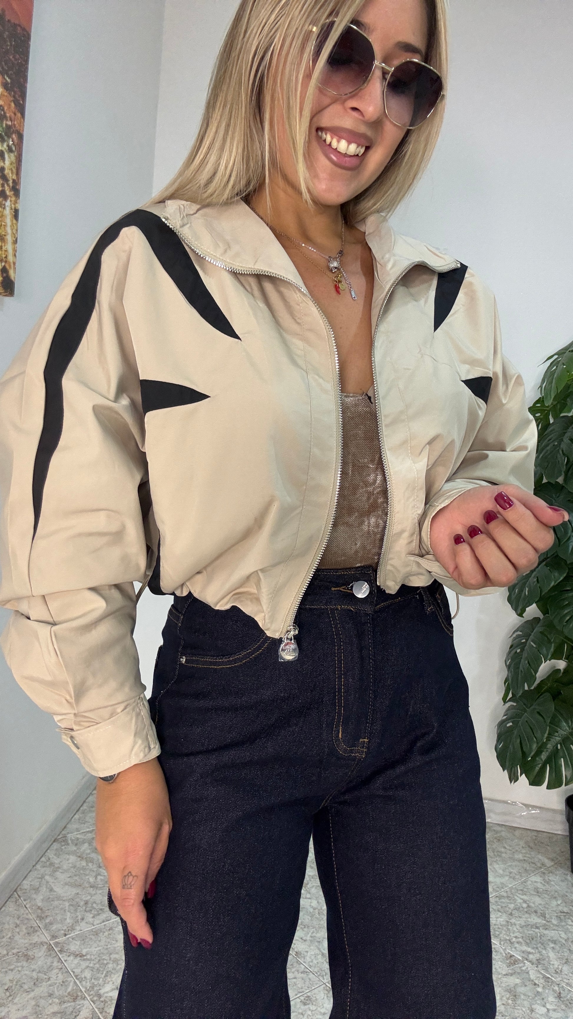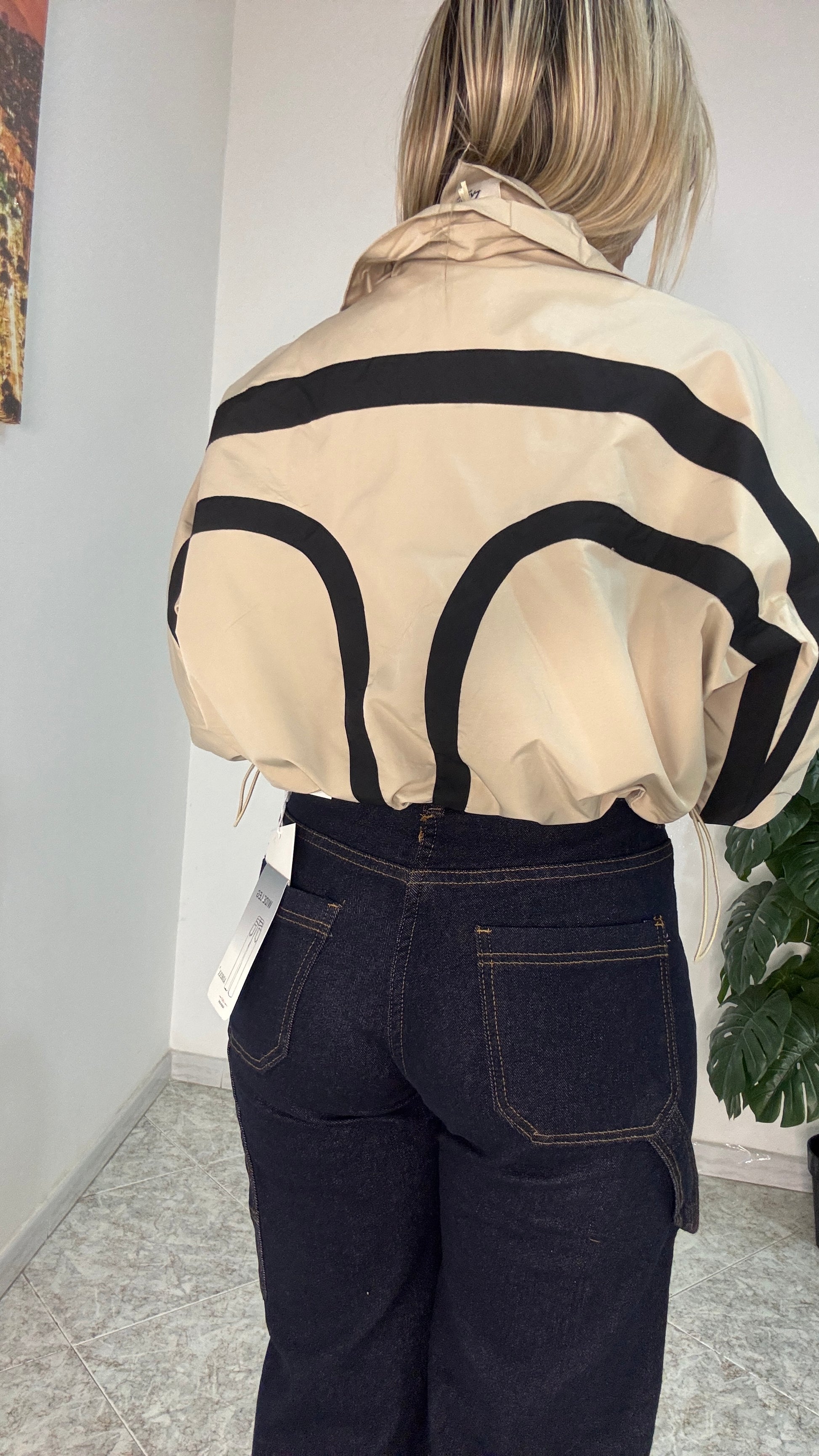 - Giubbotto crop con coulisse regolabile nei laterali