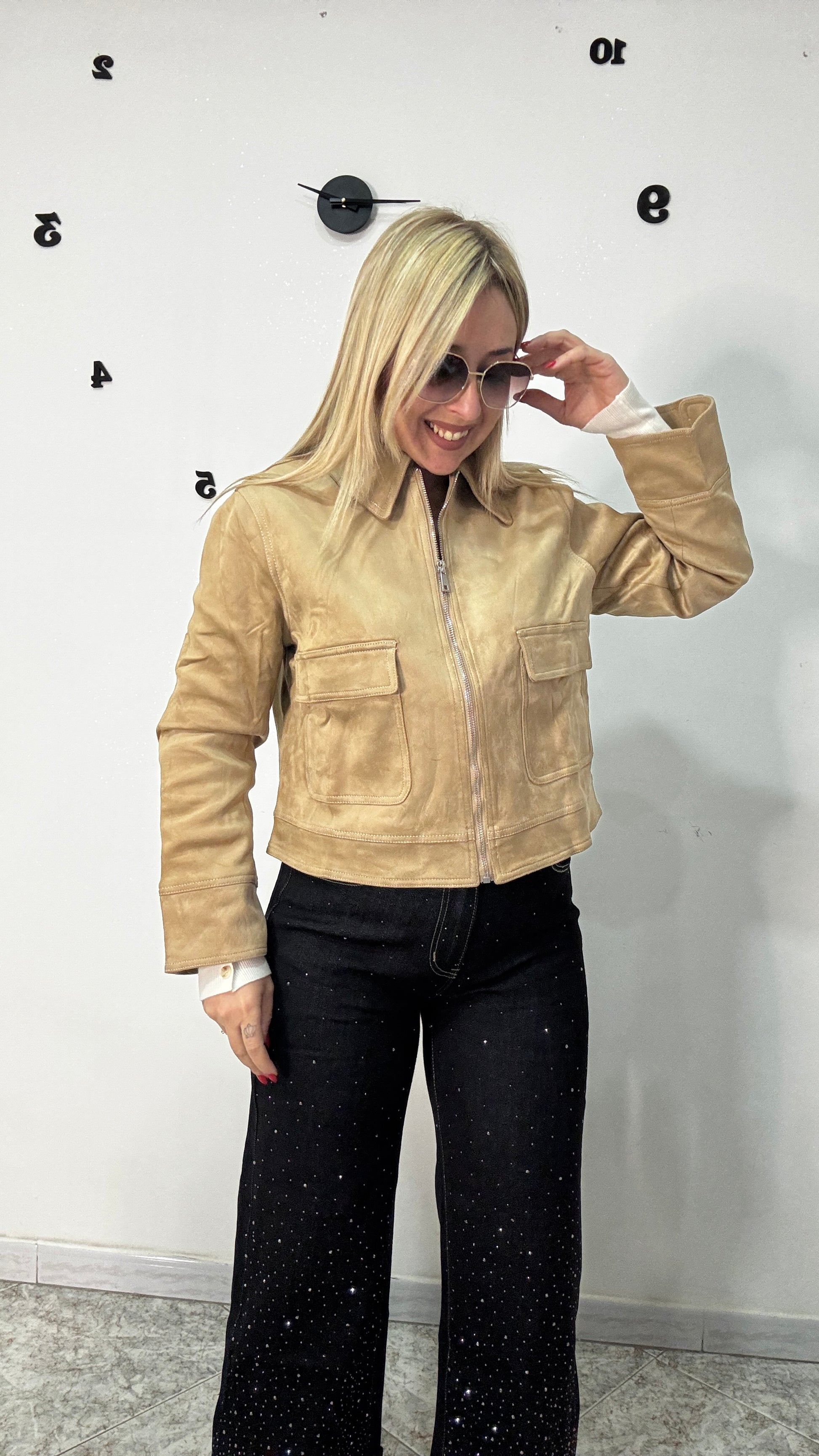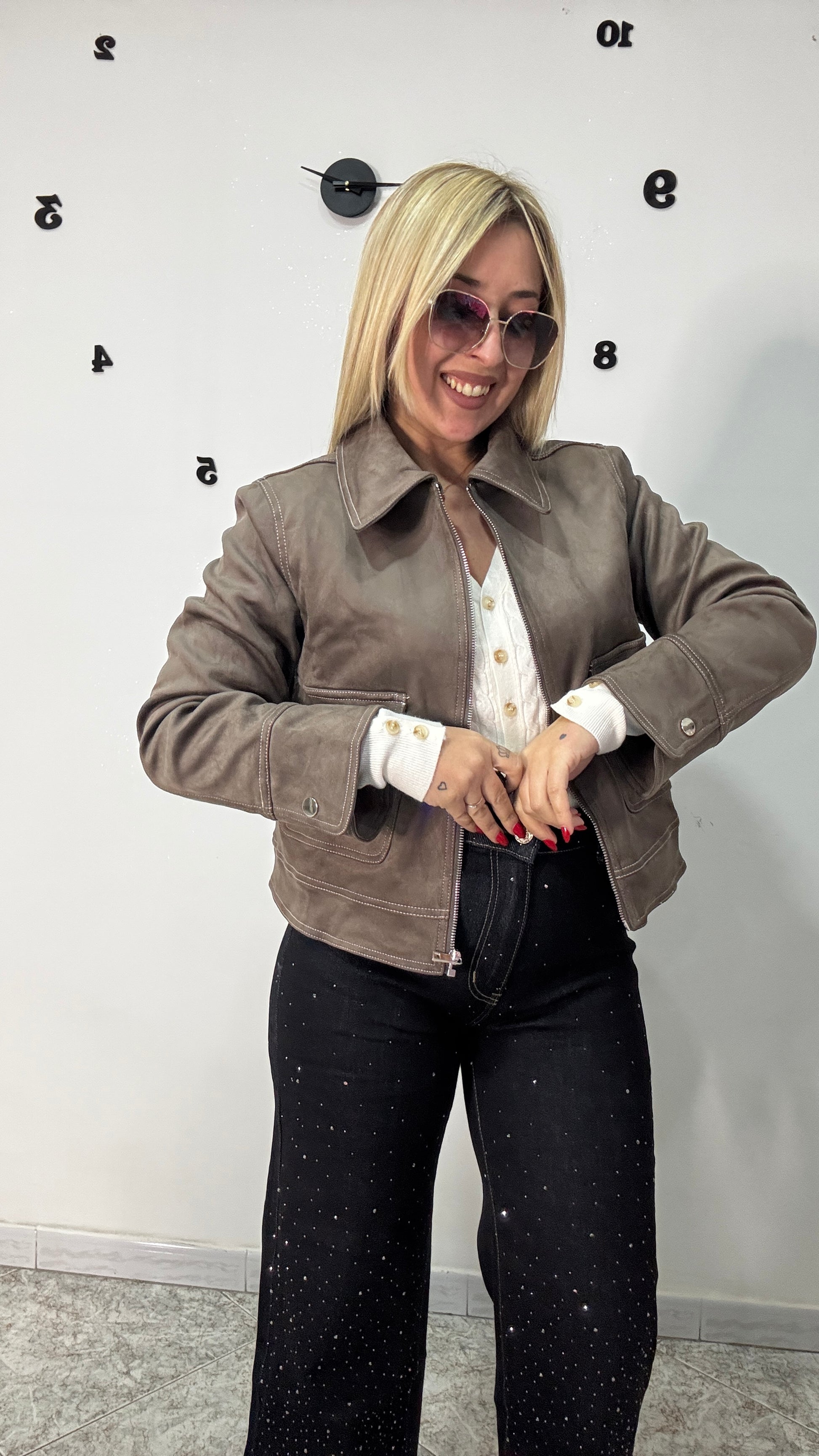 - Giubbotto vellutino con zip e tasche sul d’avanti