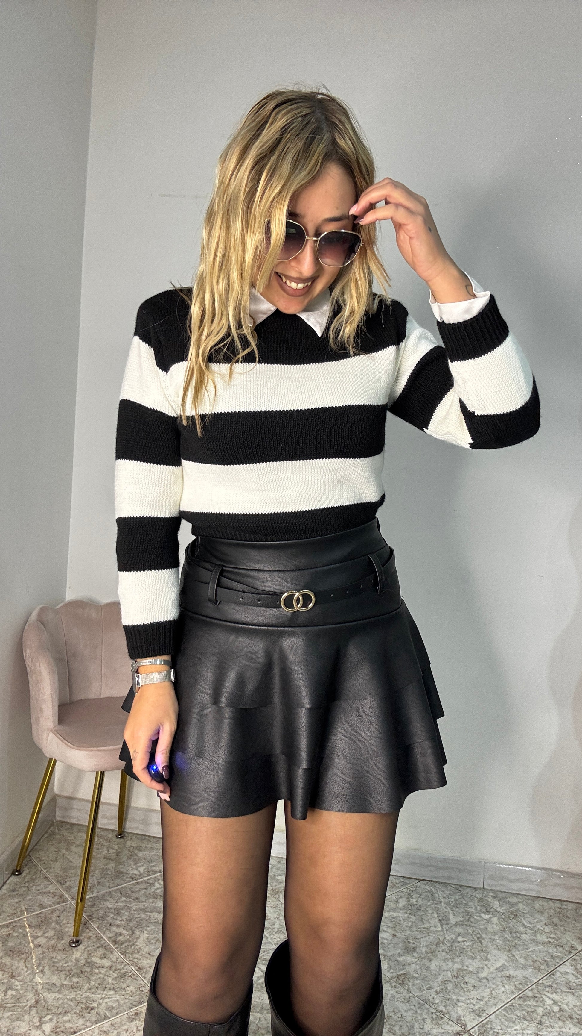 - Pantagonna ecopelle con cintura compresa